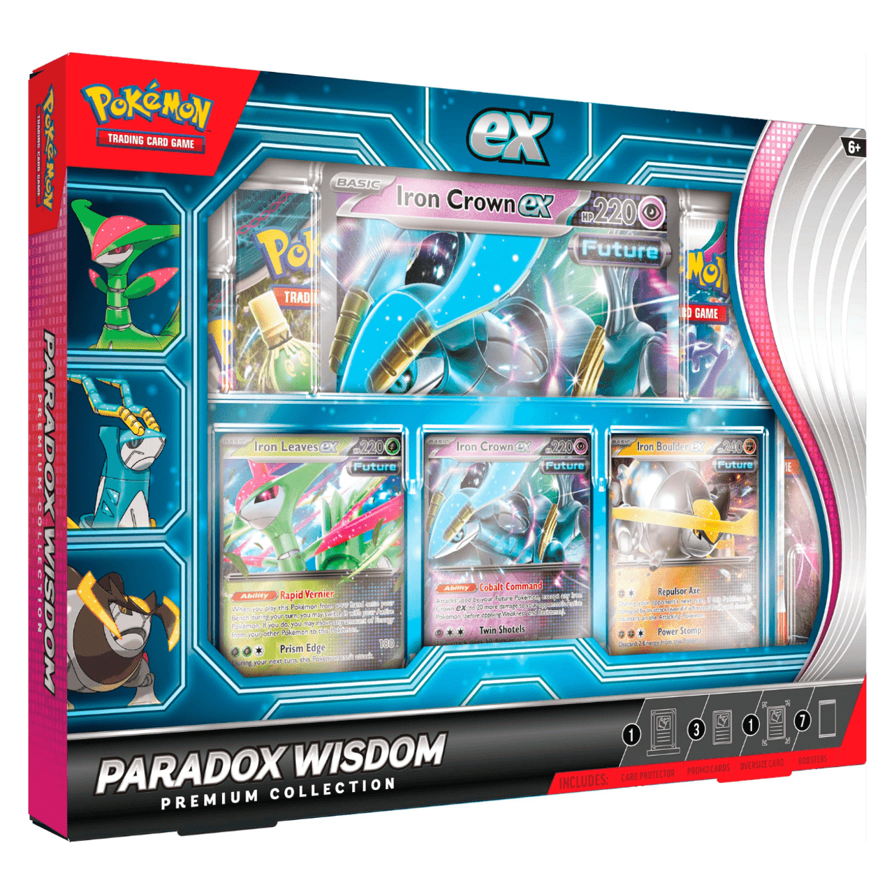 • 3 foil cards featuring Iron Leaves ex, Iron Crown ex, and Iron Boulder ex